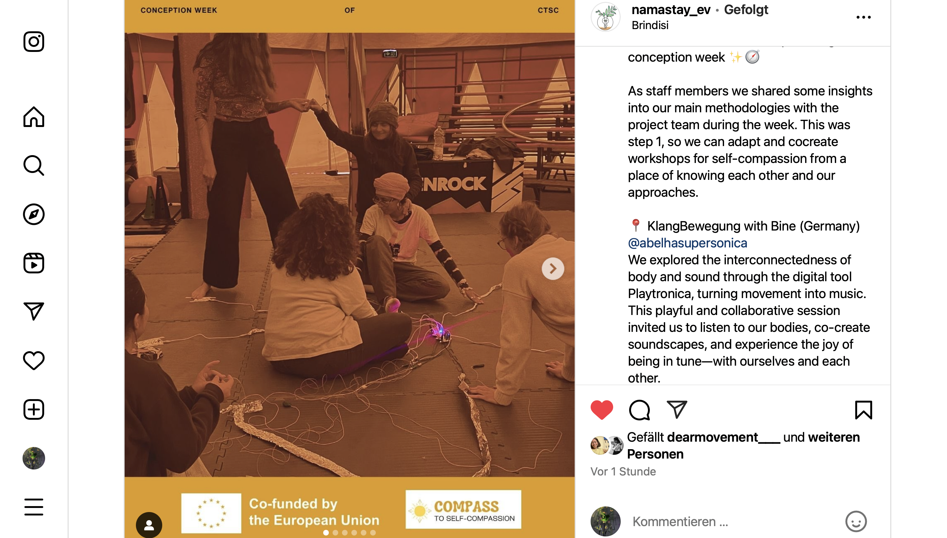Together with the artist Marilena from Italy we have worked on new approaches and methods how to connect dance and sound in an intuitively way. To get a feeling for movements – for sounds – for the body. And which methods can we use to bring different people together – musicians, dancers, teachers – in creative learn processes each from their own perspective, but connected in the interdisciplinary work.